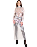 Sexy, sassy, fitted PVC club dress with vest-style top and rear zipper. Length is approx. 32". Sorry, the shown nipple...